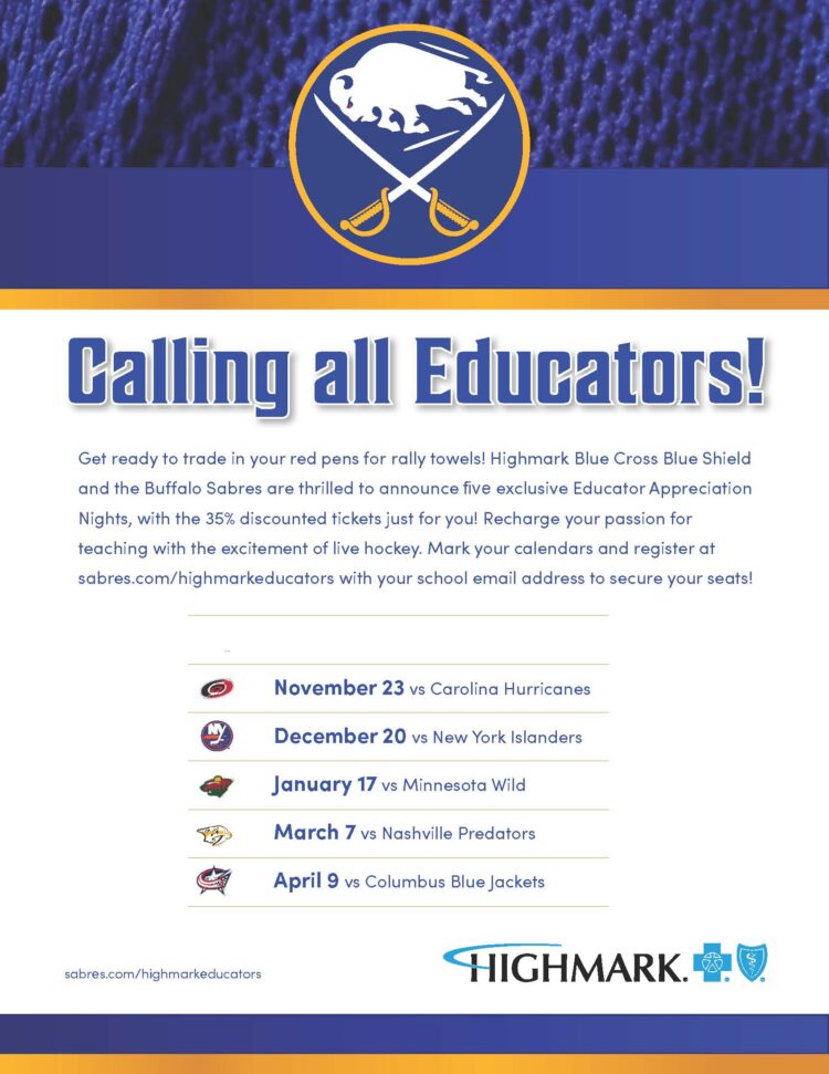 You must use the link in the flyer to purchase tickets. sabres.com/highmarkeducators