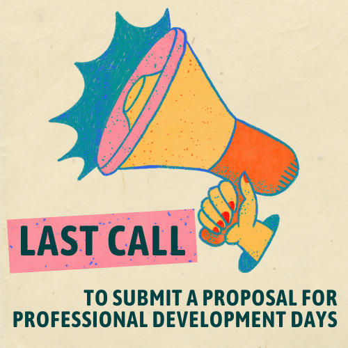 This is the last opportunity to submit a proposal to present at the the 2026 Professional Development Days taking place January 12-14.  Please submit your proposal by Wednesday, October 22nd.