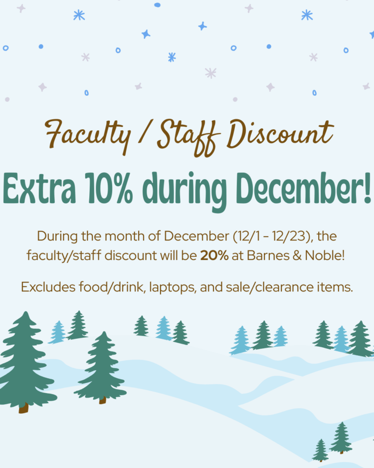 Stop by Barnes & Noble in December to do some holiday shopping with your faculty / staff discount!